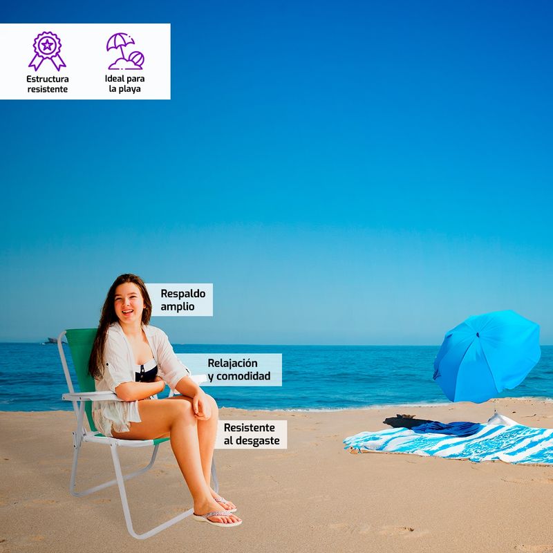 Asiento: Poliéster con revestimiento de PVC, ideal para exteriores.