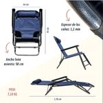 Posiciones ajustables: media, horizontal y sillón. Apoyapiés: se puede apoyar los pies para mayor comodidad. Incluye: almohada apoyacabeza para mayor confort. Plegable: fácil de transportar y guardar. Diseño ergonómico: pensado para brindar máxima comodidad en diferentes posiciones. Materiales tela: poliéster de alta durabilidad. Estructura: caño negro y duradero. Este mueble es ideal para exteriores e interiores, ofreciendo practicidad y confort en cualquier espacio.