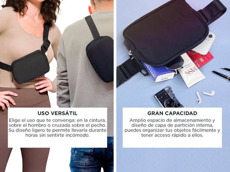 Varias formas de usar: Si (cintura, hombro, cruzado)