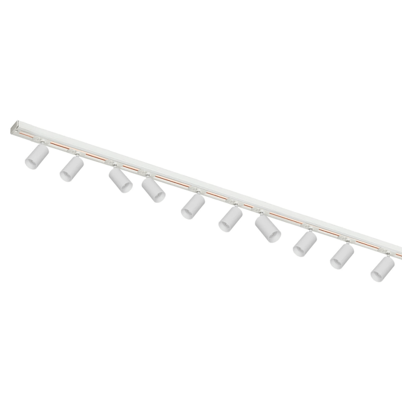 Transformá tus espacios con iluminación moderna y eficiente gracias a este riel de 3 metros con 10 cabezales Biz, especialmente diseñado para lámparas dicroicas GU10 (no incluidas). Ideal para instalar en techos, este sistema te brinda una solución práctica y versátil para realzar cualquier ambiente interior.