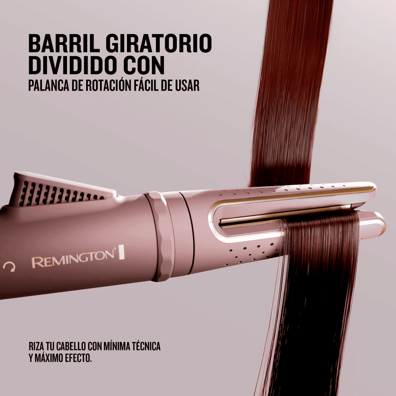 - Barril giratorio dividido que facilita el rizado sin esfuerzo.