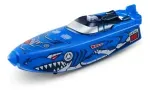 - Diseño colorido y aerodinámico con detalles que simulan lanchas de carrera.