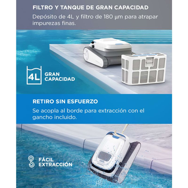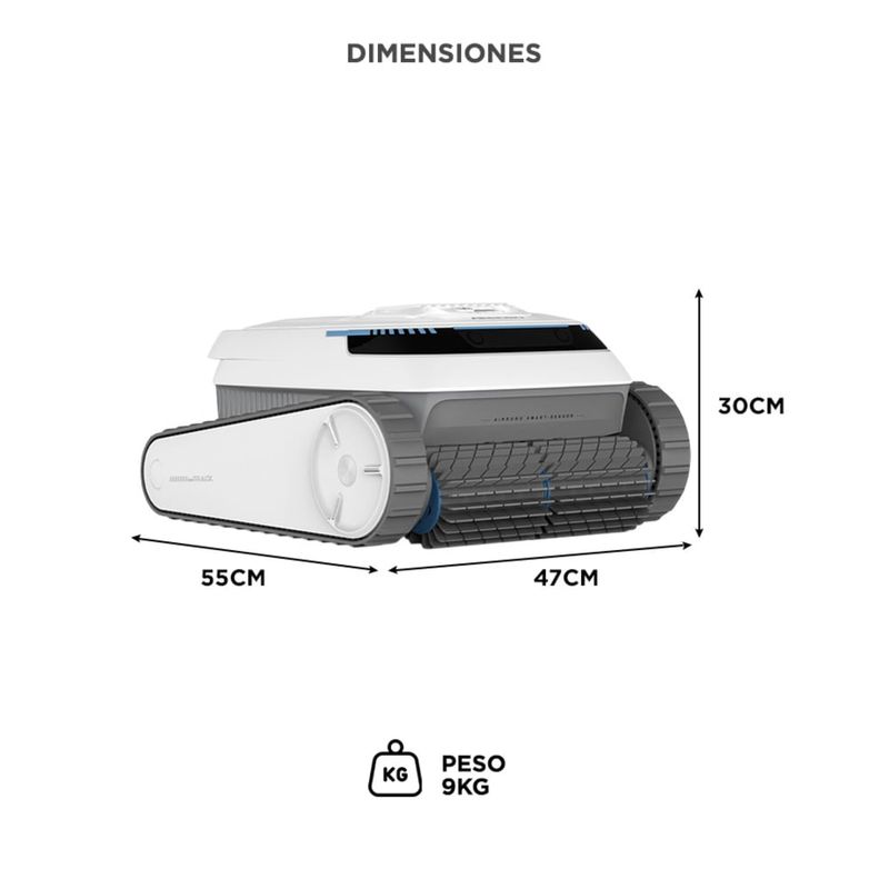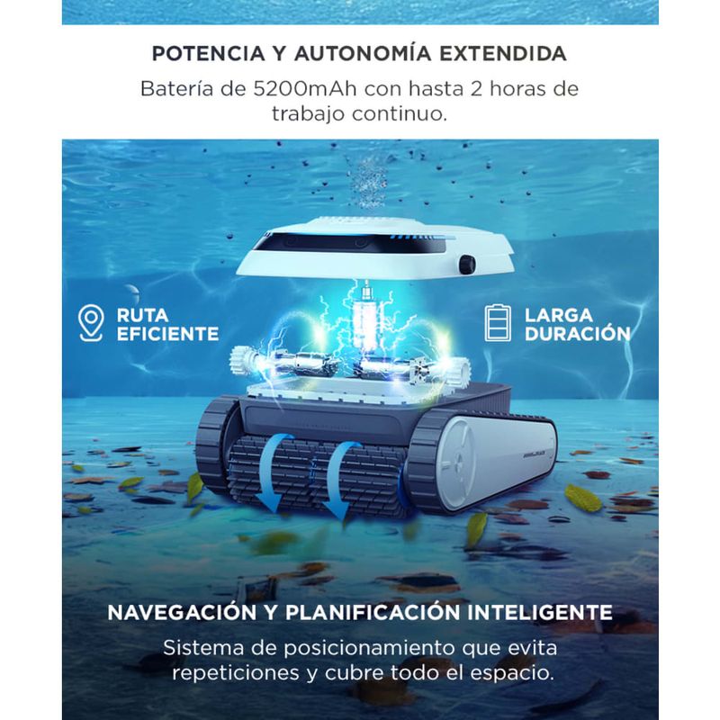 Capacidad de 5200mAh para hasta 2 horas de limpieza continua en todo tipo de piscinas.