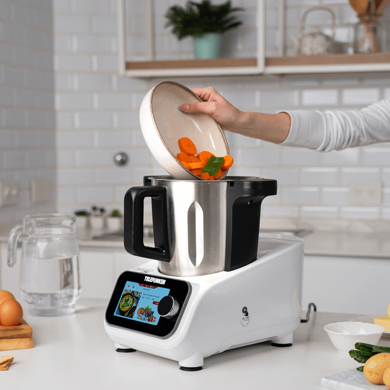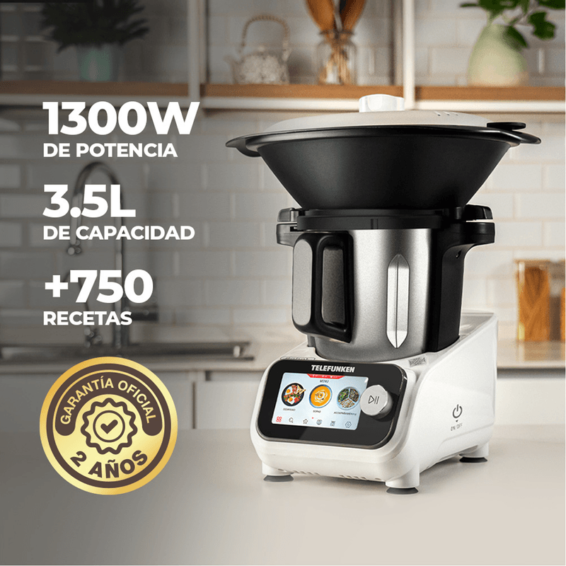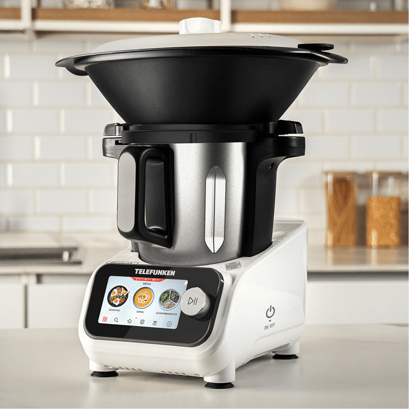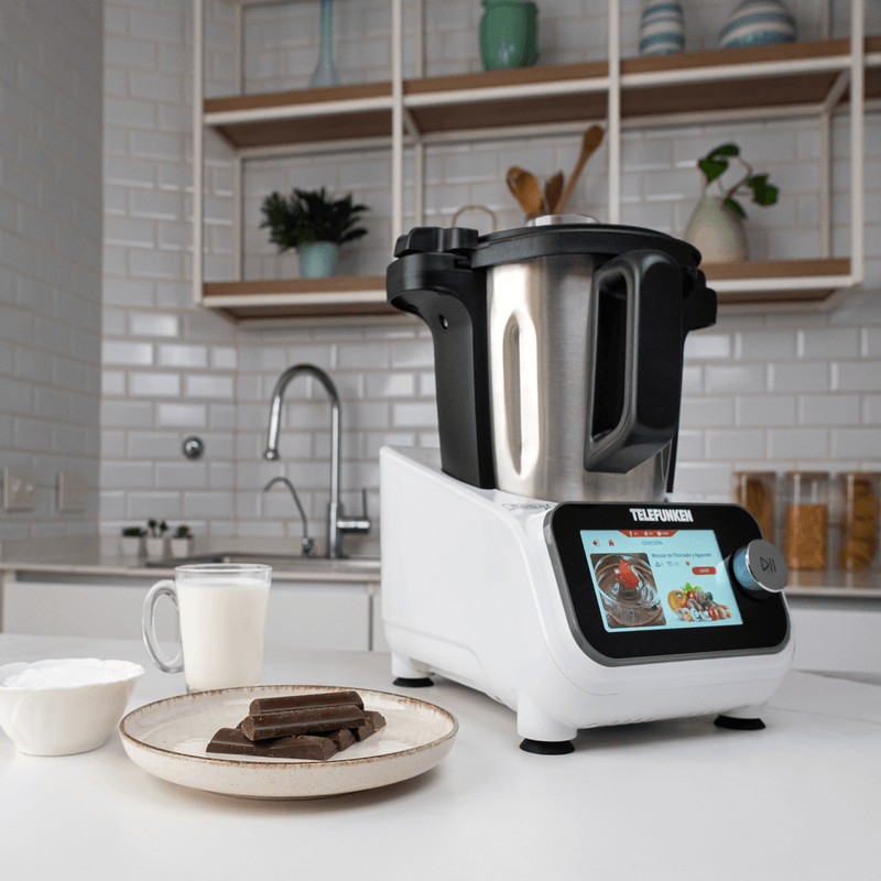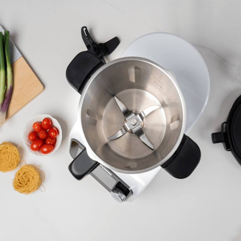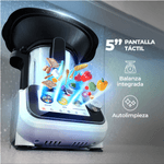 Su diseño elegante y moderno; su recipiente de acero inoxidable alemán de 3,5L, la balanza integrada de hasta 5kg y sus 9 accesorios incluidos te dan todo lo que necesitás para cocinar fácil, rico y variado en casa.
