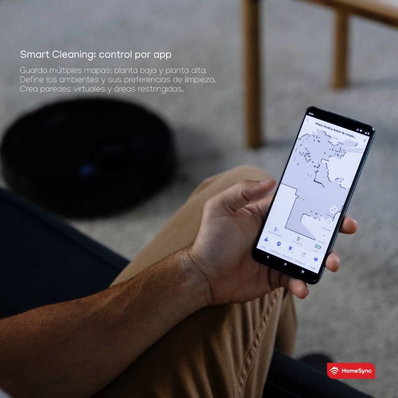 Control por voz y navegación de última generación: compatible con Alexa y Google Home, y equipado con navegación láser LDS y App HomeSync, el robot se adapta a tus necesidades y evita obstáculos y caídas sin que tengas que intervenir.
