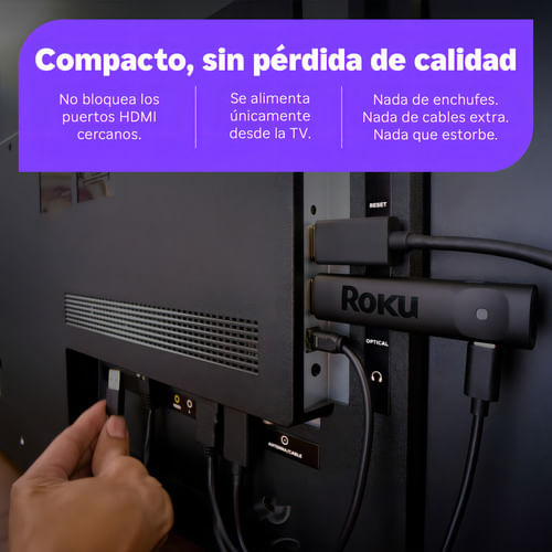 Factor de Forma: Diseño ultra compacto que se conecta directamente al puerto HDMI, quedando oculto tras el televisor.