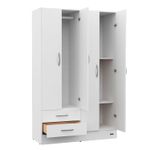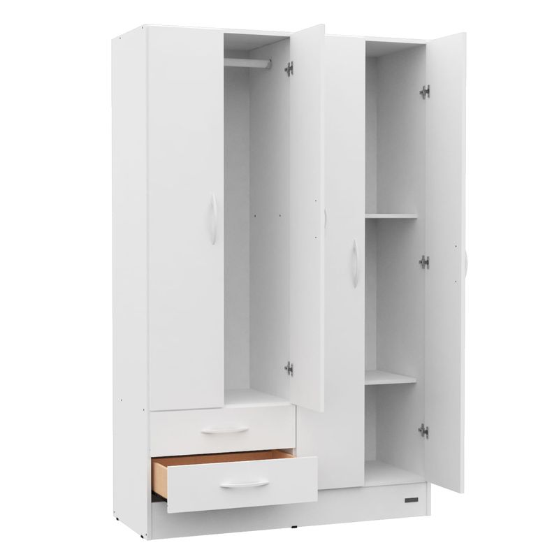 * Espacio interior de colgado con barral plástico más un espacio con 2 estantes. 2 cajones con correderas metálicas.