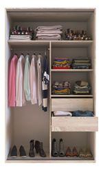 El Ropero Reflex de 2 puertas corredizas y 2 cajones con 3 estantes internos redefine la organización. Fabricado en melamina de alta gama de 15mm MDP, incluye correderas telescópicas, guía superior e inferior, tiradores de puertas y perchero en aluminio anodizado, aportando un toque de sofisticación. Además, sus ruedas inferiores con amortiguación facilitan su desplazamiento, convirtiéndolo en el mueble perfecto para cualquier habitación.
