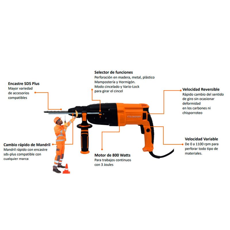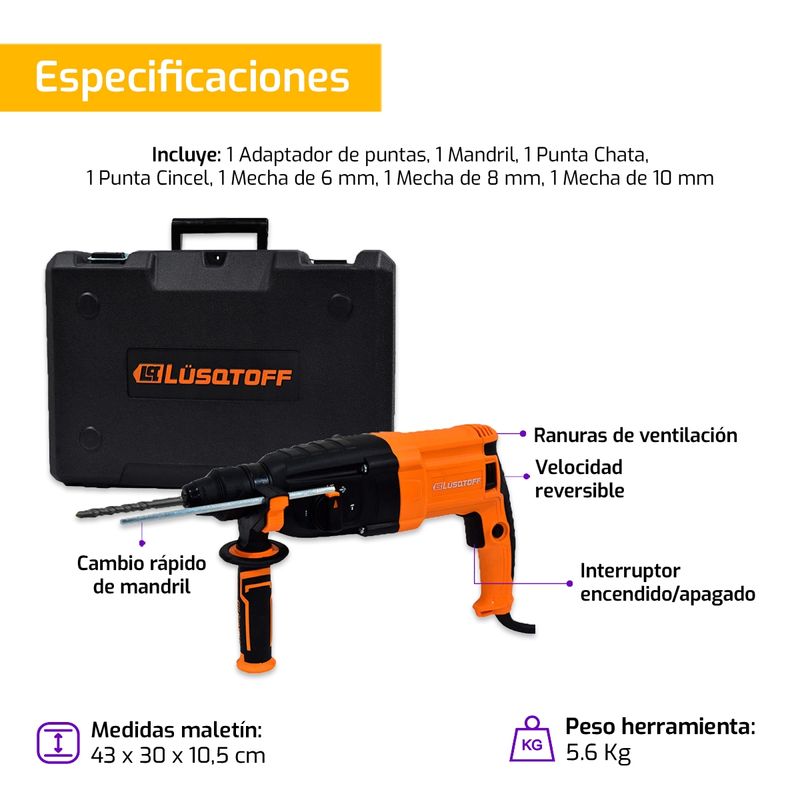 Rotomartillo 850W Lusqtoff RML850-7 + Maletín + Accesorios