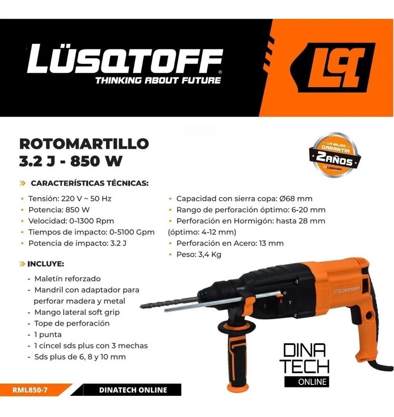 Rotomartillo Taladro Percutor Lusqtoff RML850-7 horizontal
