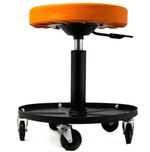 Gracias a su sistema neumático de regulación de altura y a sus ruedas giratorias, el banco permite desplazarse fácilmente en el área de trabajo sin necesidad de levantarse, facilitando el acceso a distintas zonas mientras se trabaja. Además, cuenta con una bandeja metálica integrada que permite mantener herramientas y accesorios siempre al alcance de la mano.