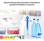 Big Guard permite almacenar contenedores grandes de bebidas en la puerta, junto con dos filas de latas y botellas. Big Guard también es ideal para enfriar botellas de bebidas altas.