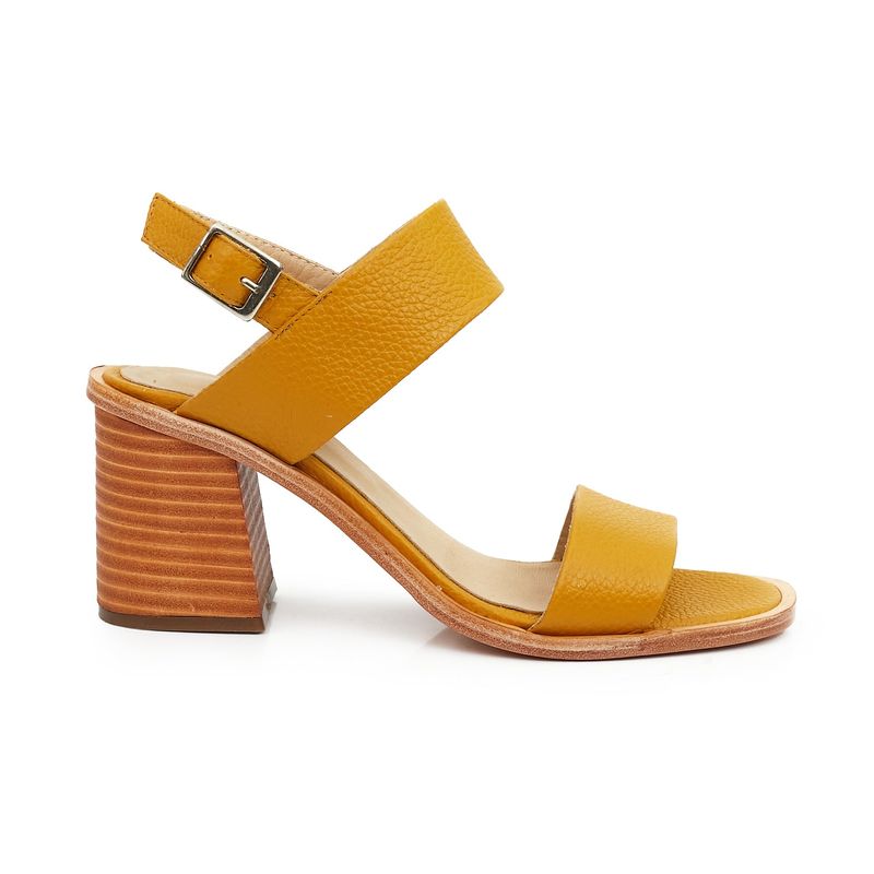 CalzadoFemeninoSandaliasSANDALIA CASSIE MOSTAZA ZUECO CUERO MUJER ELEGANTE