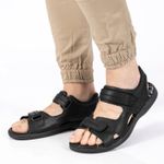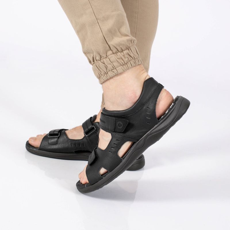 Sandalias de hombre fabricadas en cuero premium. Su estilo de inspiración deportiva aporta un diseño moderno y atemporal. Incluye dos tiras con velcro sobre su empeine, para que puedas regular el ajuste a tus pies según tus necesidades. Perfecta para un paseo por la costa sin perder la comodidad y el estilo.