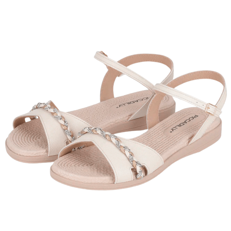 SANDALIAS PICCADILLY PLANTILLA CONFORT. ECO CUERO ITALIANO. MUY LIVIANAS. BASE DE GOMA ANTIDESLIZANTE. PULSERA EN TOBILLO CON ELASTICO QUE SUJETA LA HEBILLA.