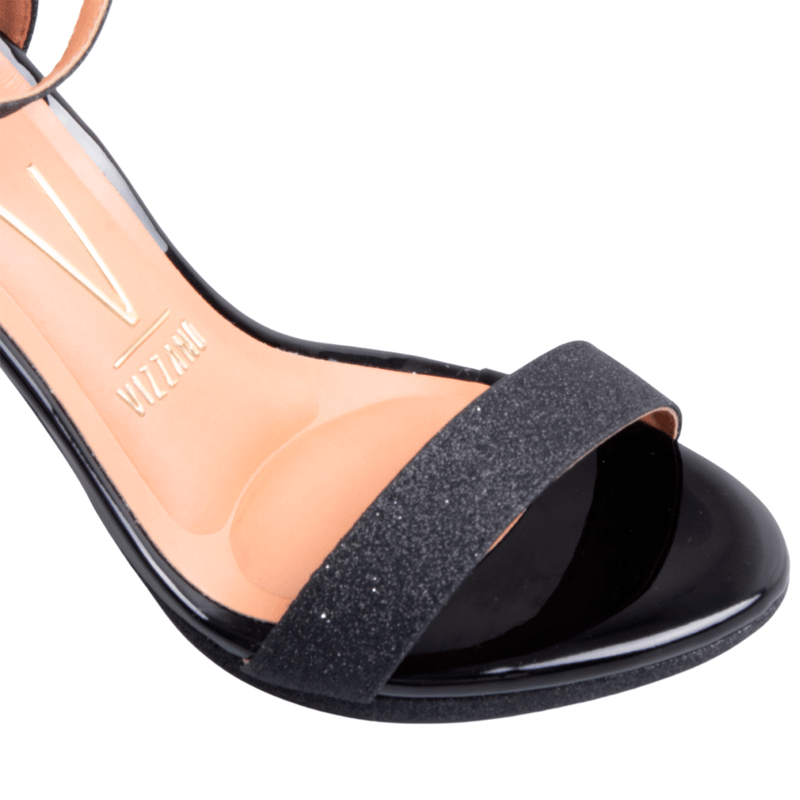 Capellada de tela Shine (delicado brillo) combinado con charol en la base del pie.