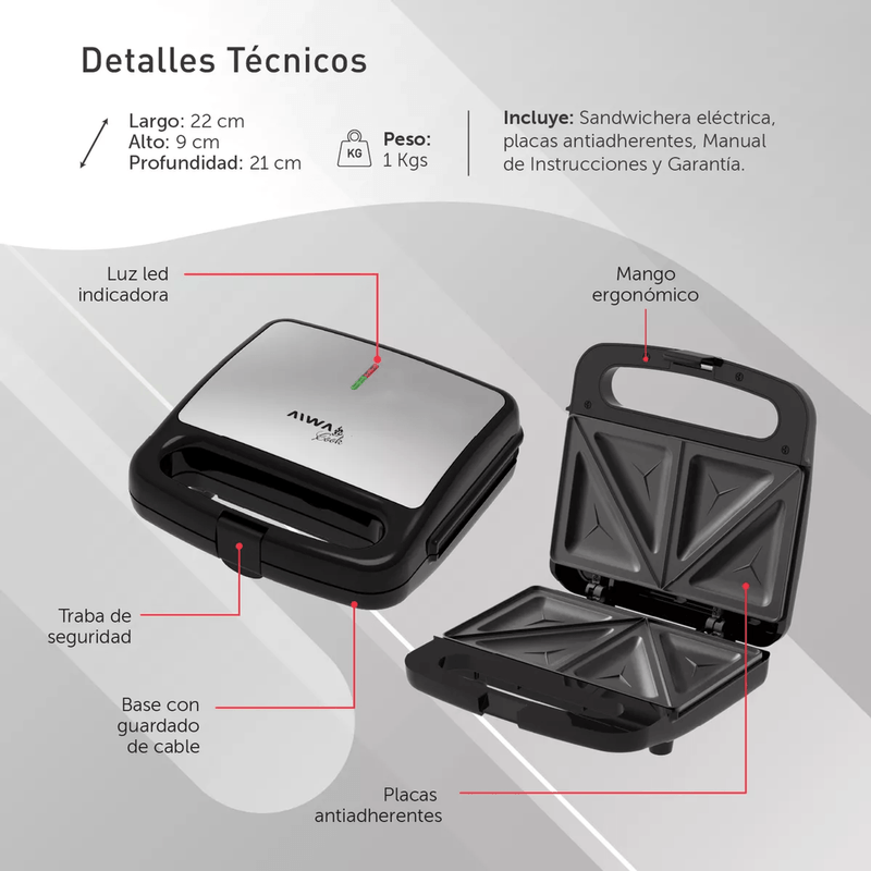 Sandwichera Eléctrica Aiwa Cook AWK-SW100I