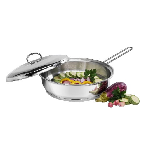 Si buscas una sartén duradera, fácil de usar y de alta calidad, la Sartén Cabernet 26 x 07 cm es perfecta para ti. Hecha completamente de acero inoxidable 18/10, esta sartén asegura una cocción eficiente y saludable, sin liberar residuos ni toxinas en los alimentos.