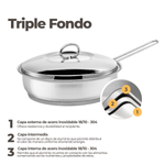 ✔ Triple fondo encapsulado: Combinación de acero inoxidable, aluminio y acero inoxidable que distribuye el calor de manera uniforme, ahorrando energía y cocinando los alimentos de forma más rápida y pareja.