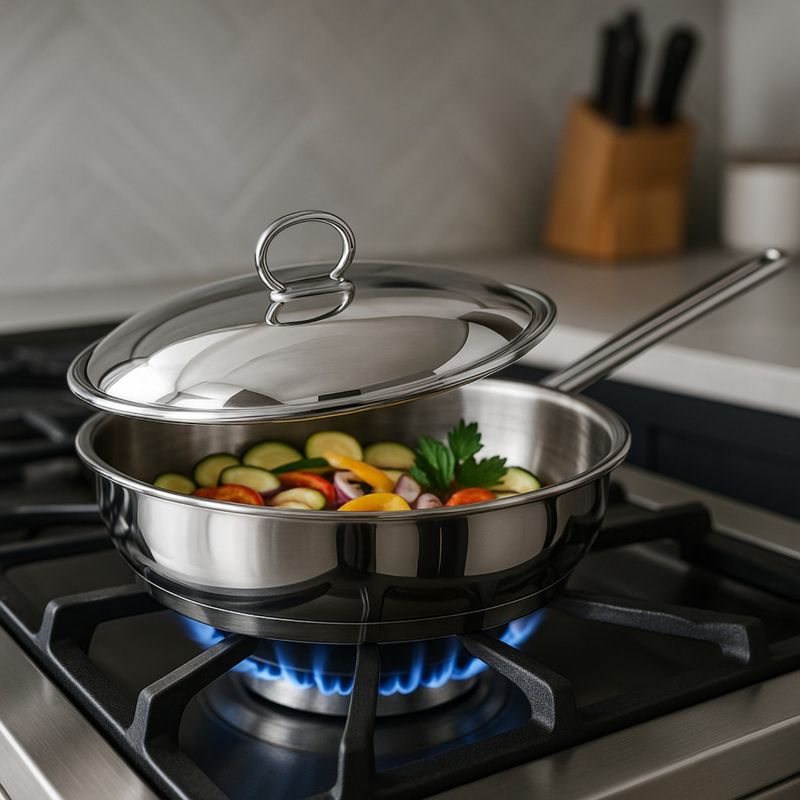 ✔ Mango y perilla de acero inoxidable: Garantizan una manipulación segura y cómoda, resistiendo altas temperaturas sin deformarse.