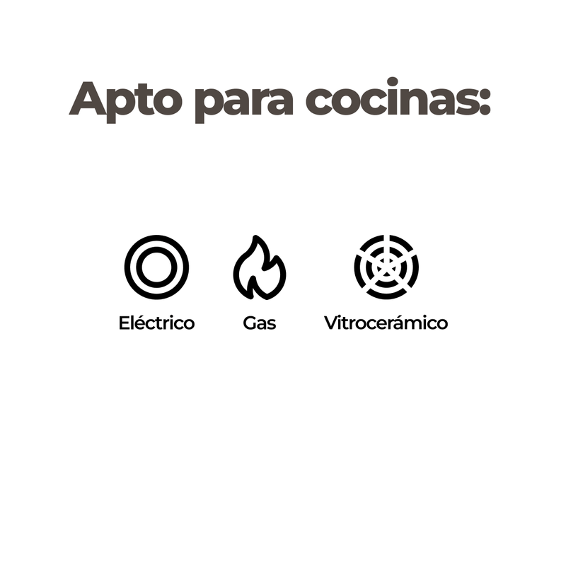 ✔ Versatilidad: Compatible con cocinas a gas, eléctricas y vitrocerámicas, pero no apta para inducción.
