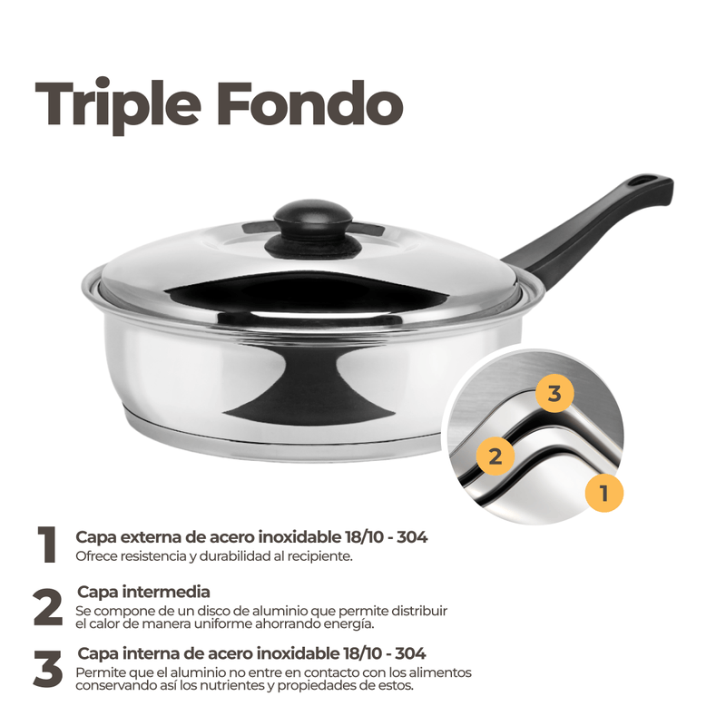 ✔ Triple fondo encapsulado: Acero inoxidable, aluminio y acero inoxidable, que distribuye el calor uniformemente, proporcionando una cocción más rápida y eficiente, ahorrando energía y manteniendo los alimentos calientes por más tiempo.