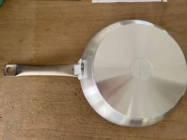 Base: Base de alto espesor con acabado pulido espejo para una distribución uniforme del calor, lo que permite una cocción ideal y garantiza una planitud perfecta del utensilio.