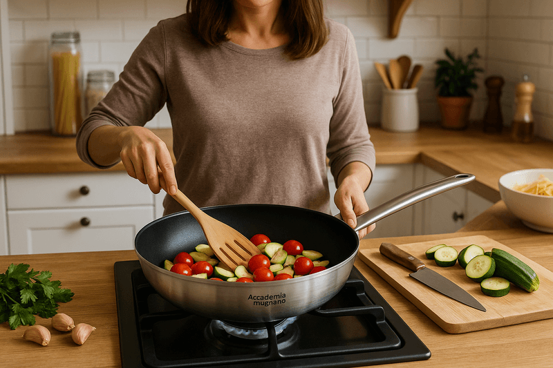 Professione Cuoco – Serie 501 es la línea de aluminio forjado de alto espesor, diseñada para quienes consideran la cocina tanto una profesión como una pasión. Ofrece un calentamiento rápido y uniforme, superficies resistentes para un uso diario intensivo, asas de acero y una base con acabado de espejo micropulido para máxima estabilidad y precisión. La superficie interior cuenta con un revestimiento antiadherente de última generación que garantiza una cocción saludable, rápida y sin estrés. Apta para cocinas de gas, halógenas y radiantes, está diseñada para quienes trabajan con rigor y requieren herramientas a la altura de las circunstancias.