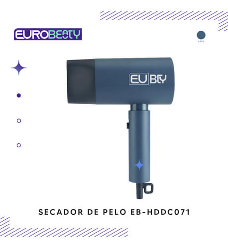 El secador de pelo Eurobeauty EB-HDDC07I es la herramienta ideal para quienes buscan un secado rápido y eficiente. Con una potencia de 1800 W, este secador ofrece dos velocidades que se adaptan a tus necesidades, permitiendo un control total sobre el flujo de aire. Su diseño en color azul no solo es atractivo, sino que también es funcional, con una boquilla de conducción que facilita la dirección del aire para un peinado preciso.
