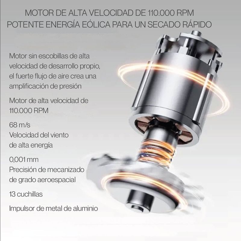 Motor: BLDC de alta eficiencia (110.000 rpm)