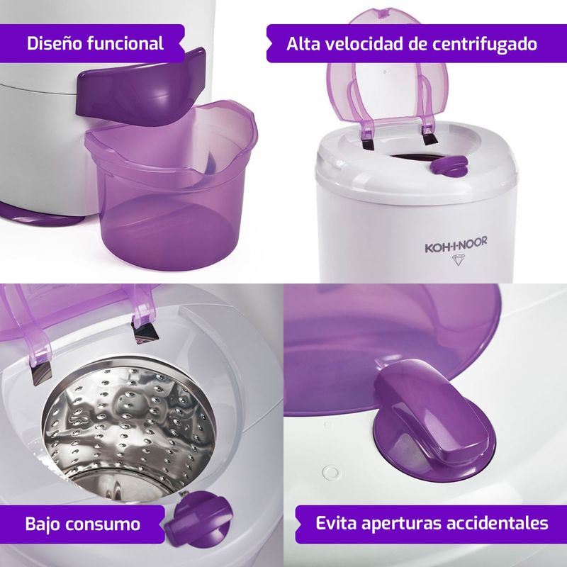Alta velocidad de centrifugado: Extrae el exceso de agua rápidamente, reduciendo el tiempo de secado.