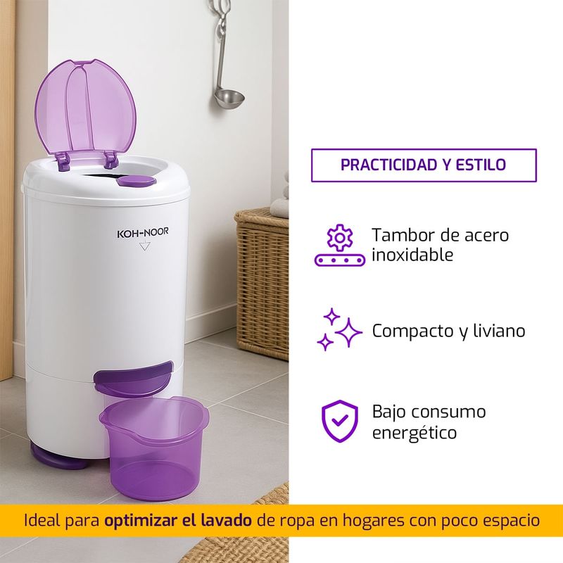 El Secarropas Centrífugo Kohinoor C-755/2 ofrece un secado rápido y eficiente con un diseño compacto y funcional. Ideal para optimizar el lavado de ropa en hogares con poco espacio.