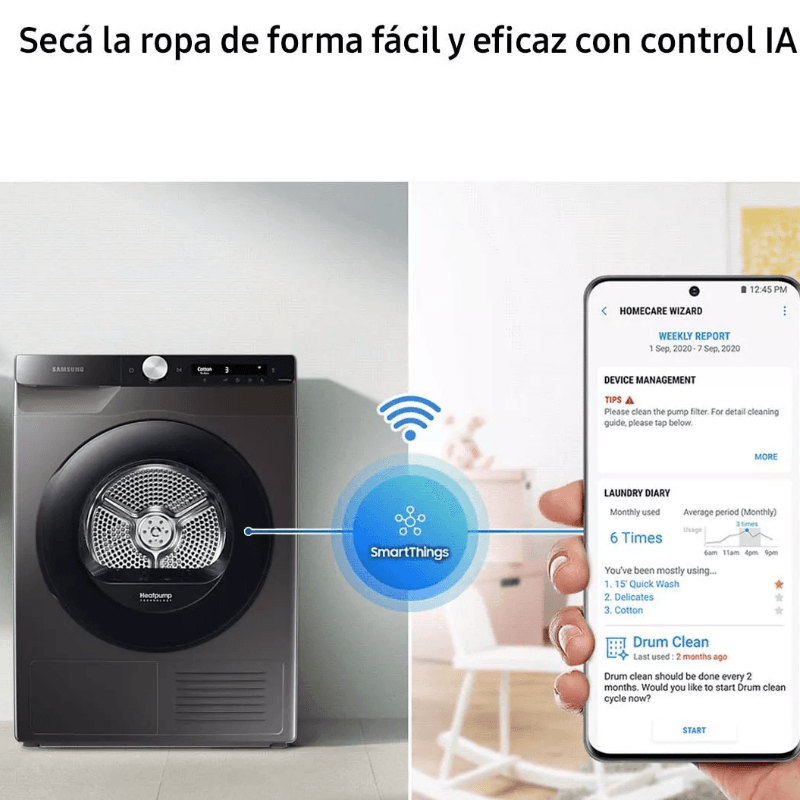 Con un lavado impulsado por IA SmartThings lavá tu ropa más fácil y eficazmente. El sistema de gestión inteligente de SmartThings* mejora el rendimiento con base en tus patrones de uso*, mientras que funciones como ‘Laundry Recipe’ recomienda los mejores ciclos de lavado** y ‘Laundry Planner’ optimiza tu programa de lavadO-