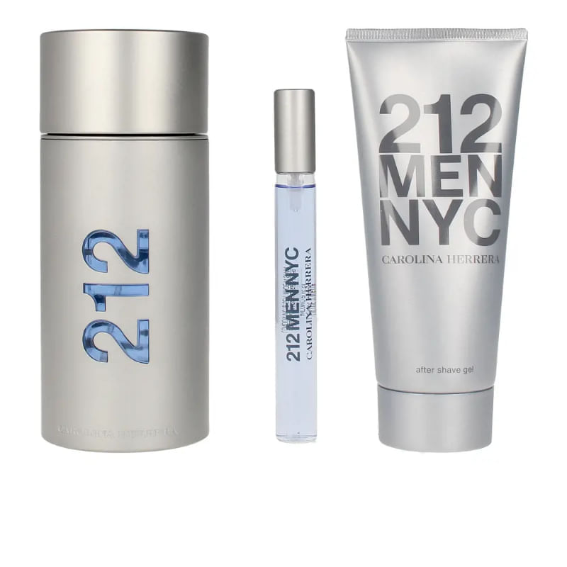 Incluye tres productos: 1 212 Men NYC EDT 100 Ml + 1 shower gel 75Ml + 1 travel size 10 Ml. Fougere floral: Notas de Salida: Hojas Cítricas, Hojas Verdes. Notas de Corazón: Lavanda y Gardenia. Notas de Fondo: Sándalo y Almizcle.