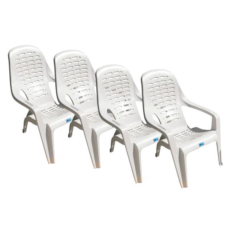 Sillón plástico color blanco con topes antideslizantes ideal para espacios al aire libre.