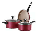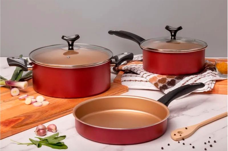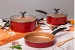 Set 5 Piezas Marmicoc -Sabores (Cacerola C/Tapa 24Cm, Olla C/Tapa 20Cm, Sarten 24Cm) Rojo y Dorado