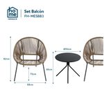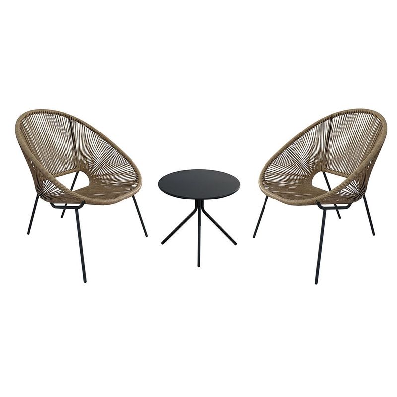 » Caracteristicas: Estructura: Acero tubular de Ø19 mm con recubrimiento en pintura en polvo para mayor durabilidadAsientos: Ratán sintético trenzado de Ø19 mm, resistente a la intemperie y fácil de limpiarDiseño apilable: Ahorra espacio al guardarlasUn conjunto liviano, funcional y decorativo, perfecto para disfrutar un café al aire libre en espacios reducidos con estilo y confort.PI 2506701AITEM NUMBER: TGSSTW0005Incluye2 sillas apilables: 68 x 70 x altura de asiento 39 cm / altura total 82 cm1 mesa redonda: Ø50 x altura 46 cm