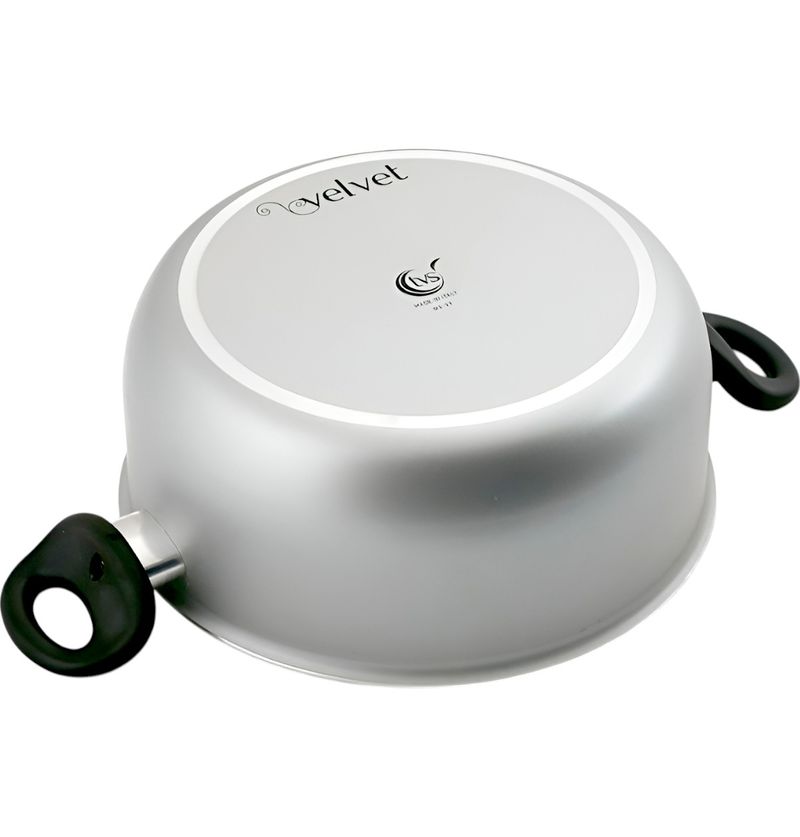 La línea de utensilios de cocina Velvet tiene un diseño moderno y elegante. Apto para cualquier cocina, tanto moderna como clásica. Los utensilios de cocina de la línea Velvet son aptos para todo tipo de cocinas excepto la inducción. El revestimiento antiadherente de Ipertek durará muchos años. Cómodo mango de baquelita.
