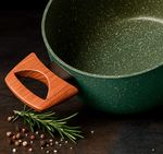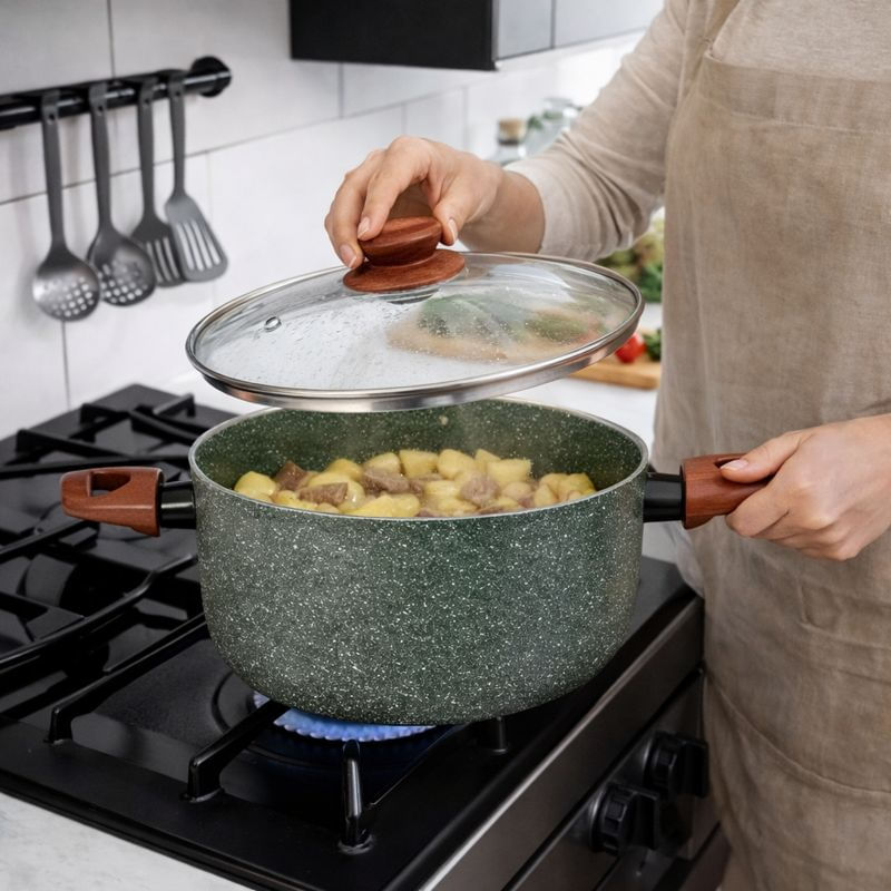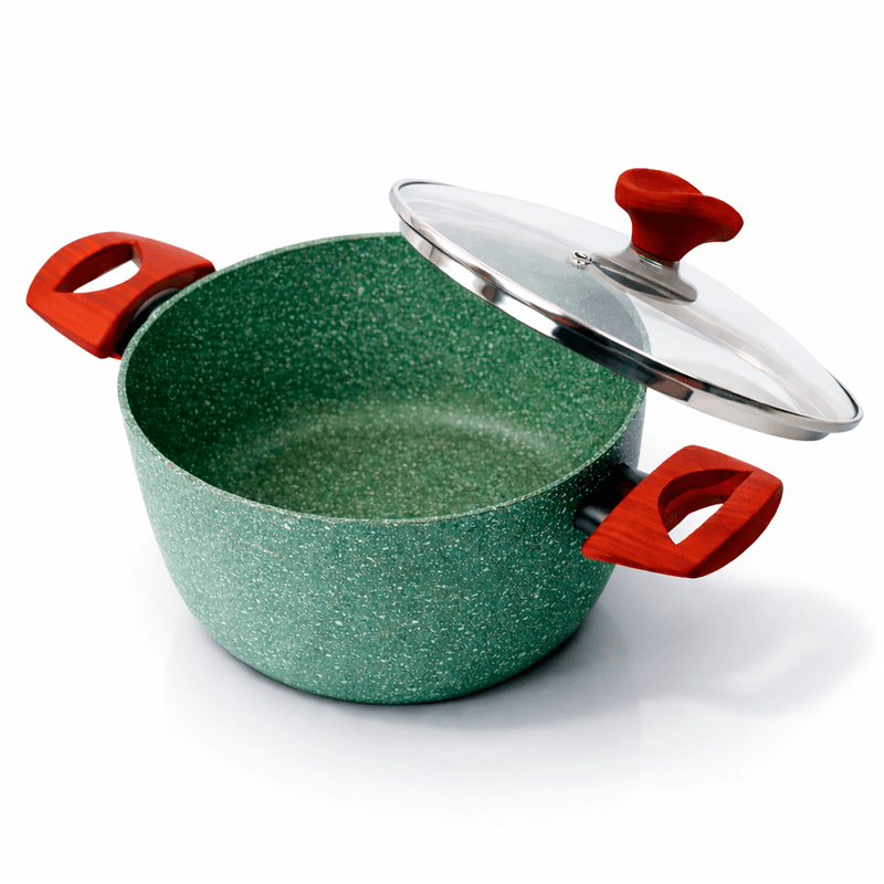 El revestimiento de 5 capas con efecto piedra tiene un acabado de glicerina vegetal libre de OGM que crea una capa antiadherente extra de forma natural .