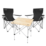 La mesa cuenta con estructura de aluminio plegable y tapa de madera que se enrolla para poder guardarla en su funda de transporte.