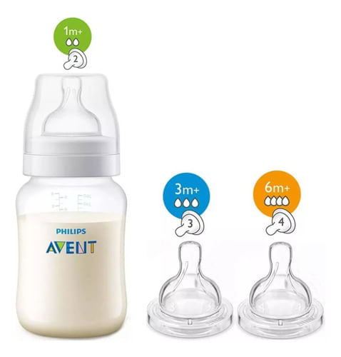 Set Combo Mamadera 260ml Avent Classic + Tetinas 3m + 6m
