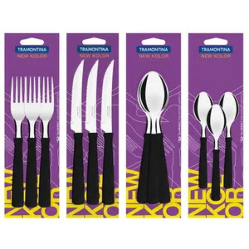 Set Cubiertos Tramontina New Kolor X24 Piezas Negro