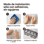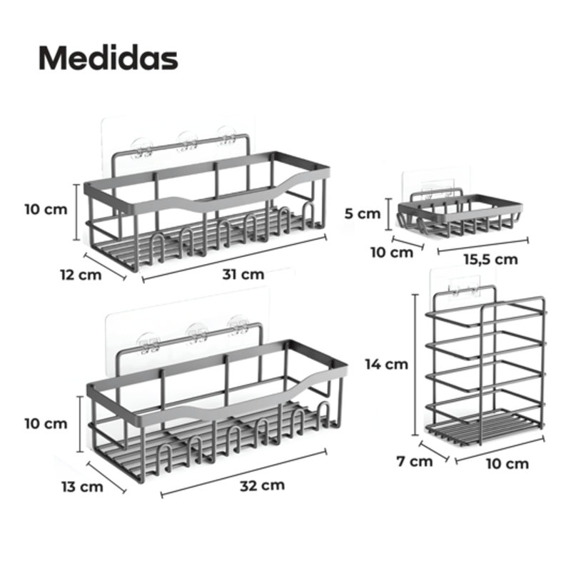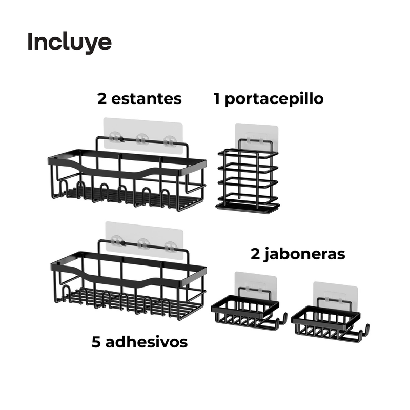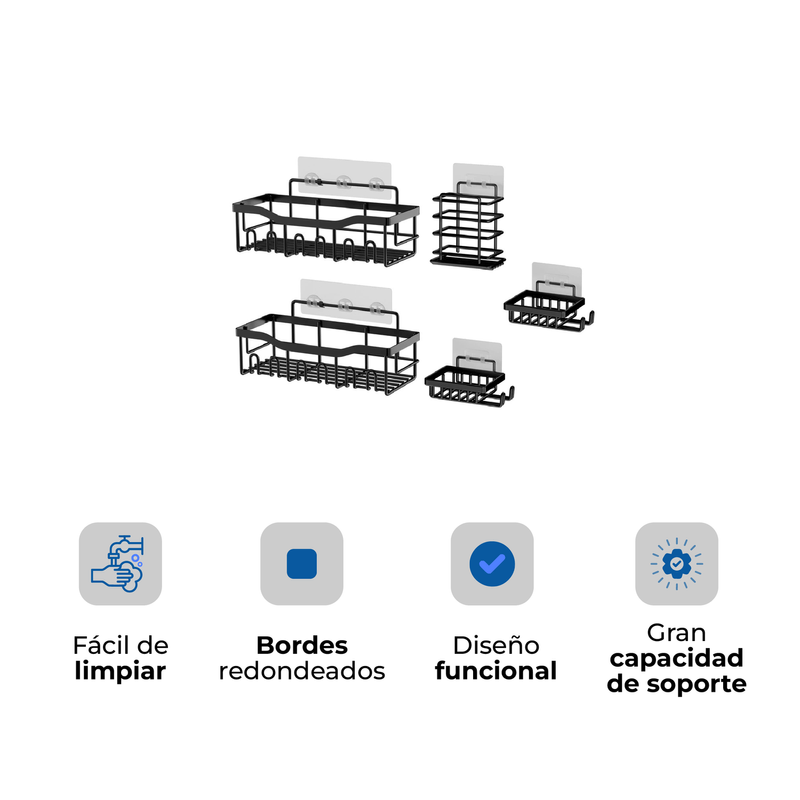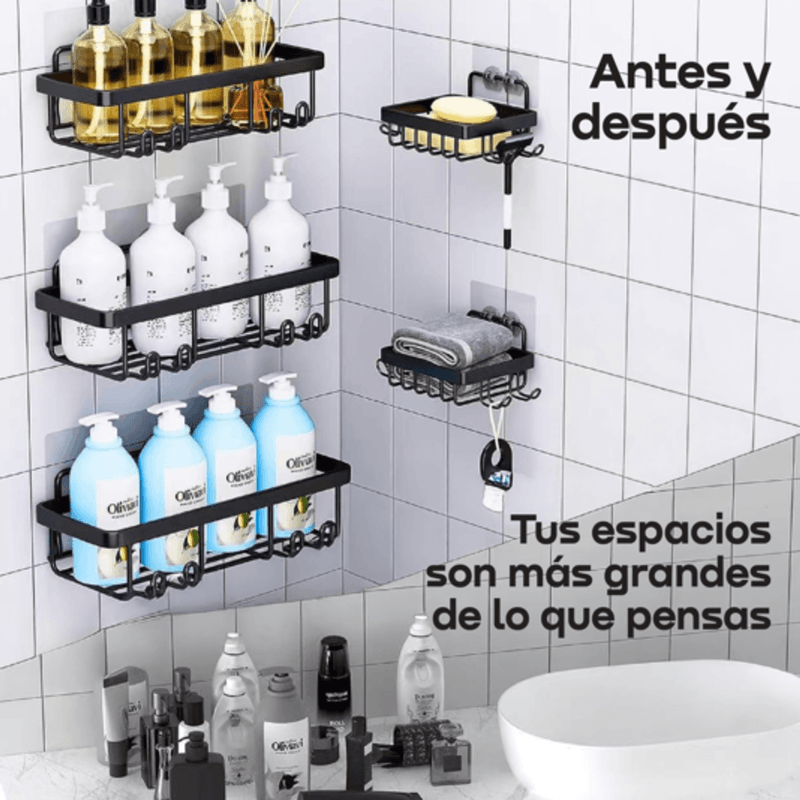 Transformá tu baño con el set x5 organizadores adhesivos WAGGS ACCB08, diseñado para lograr orden real sin perforar paredes. Fabricados en acero inoxidable anticorrosión, resisten humedad y uso diario manteniendo un diseño moderno y funcional. Su sistema adhesivo de alta fijación soporta peso elevado y se instala en minutos sobre superficies lisas. El diseño hueco favorece el secado rápido y evita acumulación de agua. Ideal para shampoo, jabones, cremas y accesorios de uso diario. Una solución versátil que también se adapta a cocina, lavadero o toilette.
