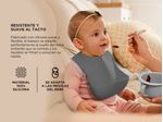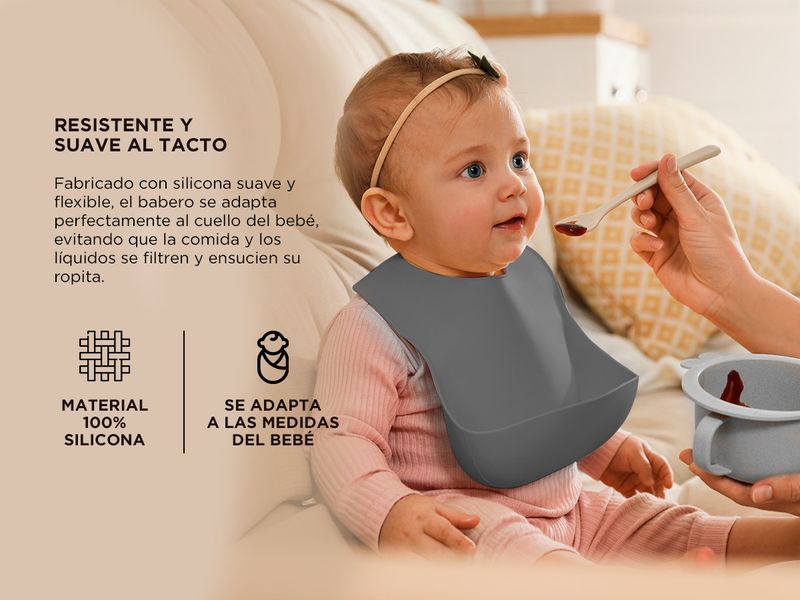 Fabricado con silicona suave y flexible, el babero se adapta perfectamente al cuello del bebé, evitando que la comida y los líquidos se filtren y ensucien su ropita. El práctico bolsillo ajustable captura cualquier alimento que caiga, manteniendo el área de alimentación limpia y ordenada.