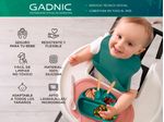 El tenedor y la cuchara incluidos en el set están diseñados ergonómicamente para adaptarse a las manos pequeñas del bebé. Fabricados con silicona suave y flexible, estos utensilios son seguros y cómodos de usar. El mango antideslizante ofrece un agarre seguro, lo que permite al bebé comenzar a practicar su autonomía durante la alimentación.