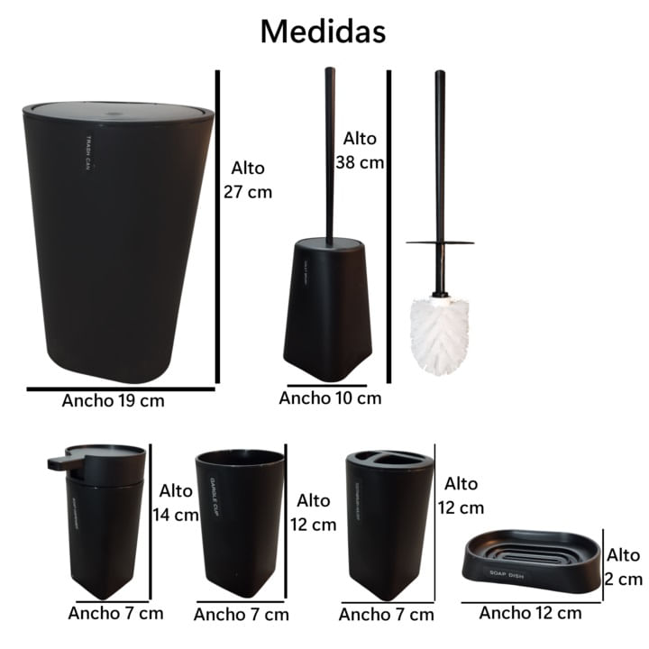 - Dispensador de jabón: aprox. 14 × 7 cm, con boquilla práctica que evita goteos.