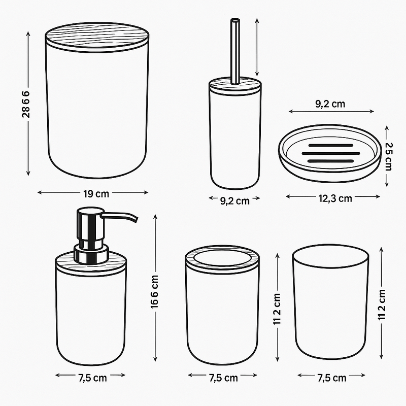 Tacho Basura - Escobilla - Dispenser - Jabonera - Porta Cepillos - Vaso