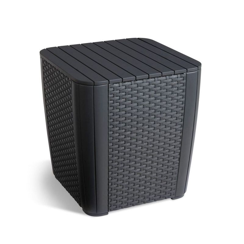» Caracteristicas: Color: grafitoMaterial: PolipropilenoMedidas: 62 x 60 x 89 cmMedidas: 39 x 39 x 42 cmTextura: Rattan