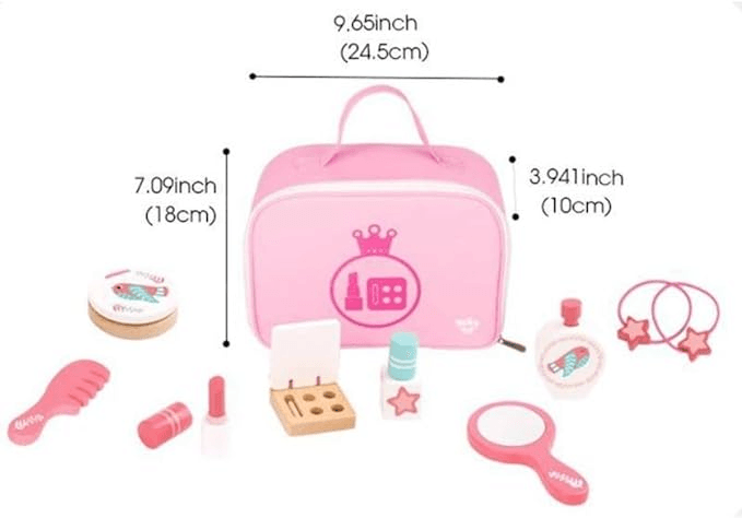 El estuche de maquillaje de color rosa es un accesorio perfecto para el juego de imitación.
