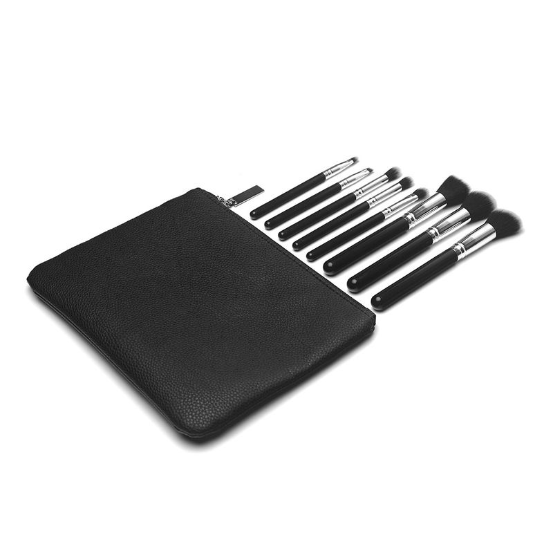 Set Pouch Margot: Set de 8 brochas para rostro y ojos + amplio estuche contenedor para traslado. El estuche esta desarrollado en PVC. Medidas: 24 x 18 cm. Tahg.